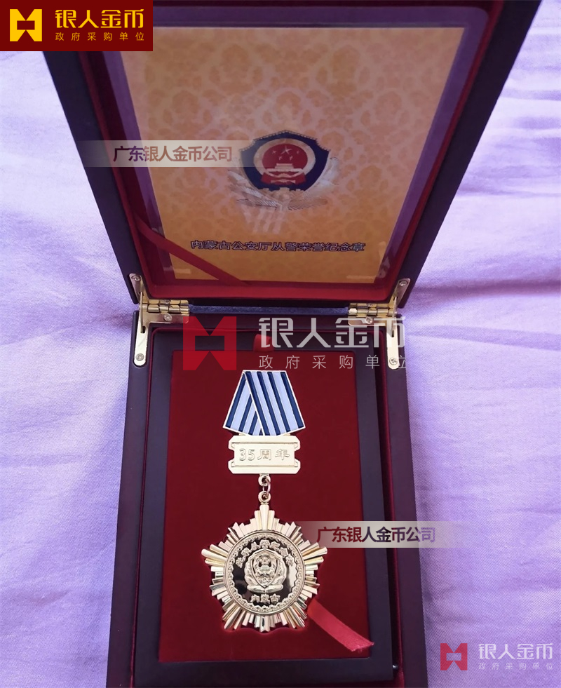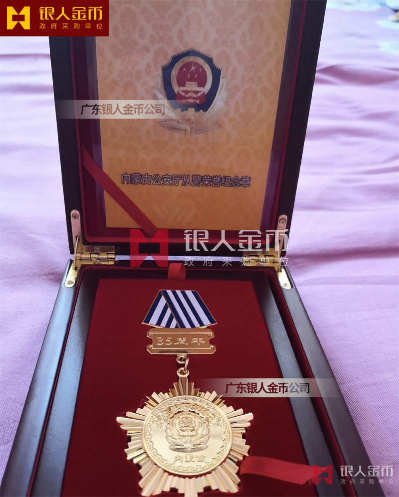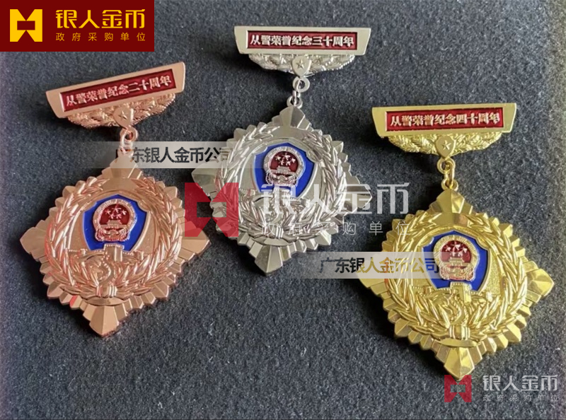 從警紀(jì)念章定制,從警年限紀(jì)念章定制,從警獎(jiǎng)?wù)露ㄖ?/font>——從警紀(jì)念章的底下主體部分都是警徽,上面橫檔部分是不相同的,有:“從警十年紀(jì)念(從警10年紀(jì)念章)”、“從警二十年紀(jì)念(從警20年紀(jì)念章)”、“從警三十年紀(jì)念(從警30年紀(jì)念章)”、“從警四十年紀(jì)念(從警40年紀(jì)念章)”不同的,從警十年紀(jì)念章(從警10年獎(jiǎng)?wù)拢┍砻媸清冦~色(銅質(zhì)獎(jiǎng)?wù)拢?/span>、從警二十年紀(jì)念章(從警20年獎(jiǎng)?wù)拢?/span>表面鍍銀色(銀質(zhì)獎(jiǎng)?wù)拢?/span>、從警三十年紀(jì)念章(從警30年獎(jiǎng)?wù)拢┖蛷木?/span>四十年紀(jì)念章(從警40年獎(jiǎng)?wù)拢?/span>表面鍍金色(金質(zhì)獎(jiǎng)?wù)拢?/span> ,整體將從警獎(jiǎng)?wù)?/font>或從警紀(jì)念章(從警特定年限紀(jì)念章也叫從警章)鑲嵌在三折的立式木盒上面,木盒外面配有紙盒,整體做工精美,木盒紙盒上面都刻有警徽從警年限等。