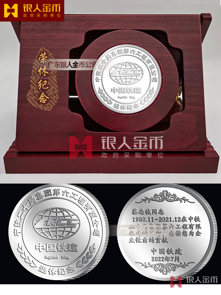 央企國企中鐵二十局集團公司職工員工榮譽退休紀(jì)念章(銀質(zhì)純銀)【廣東省金幣公司】
